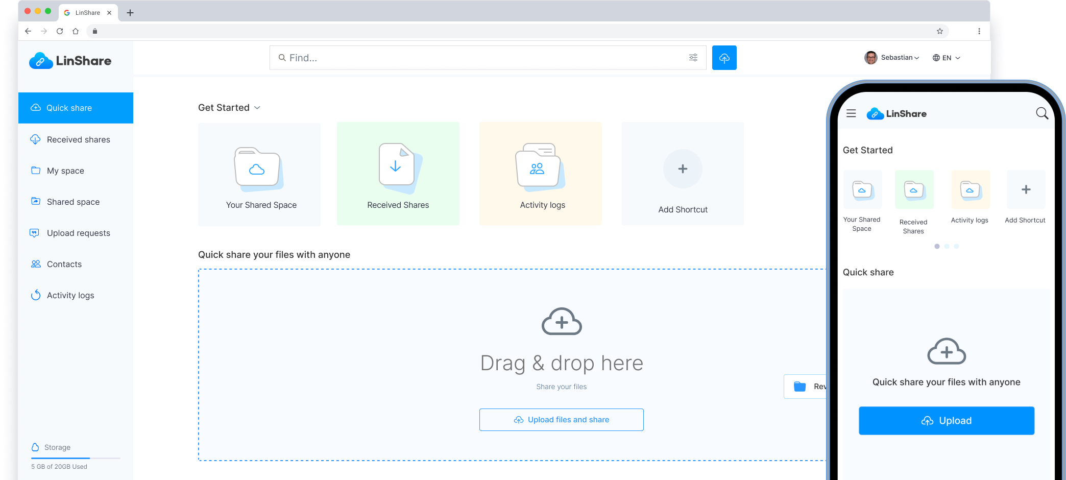 LinShare offers seamless integration with LDAP and SSO for streamlined user authentication and access management. LinShare provides a different of APIs, enabling effortless integration with various applications